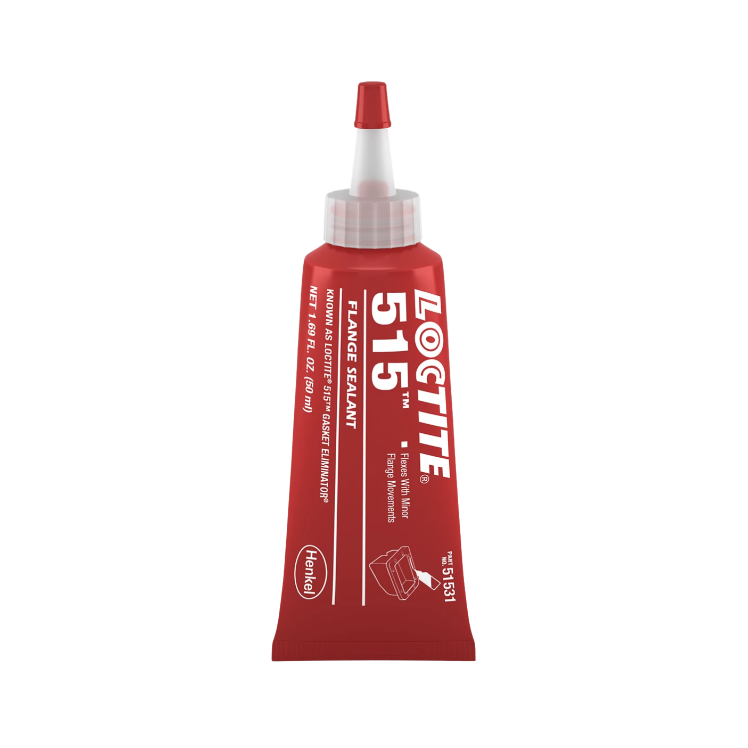 LOCTITE® 515 is a medium strength (6 N/mm² tensile shear strength), medium cure speed, methacrylate-based industrial gasketing product designed for machined, rigid metal flanges. The product, which cures anaerobically, is suitable for gaps up to 0.25 mm. It is used typically as a form-in-place product for pumps, thermostats, compressors, transmission housings and axle covers.